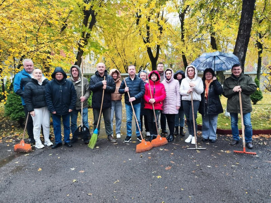 Перед началом работ директор предприятия Максим Мищенко обратился к коллегам, пожелав бодрого настроения и продуктивного труда. Несмотря на дождливую погоду, коллектив предприятия с самого утра активно трудился. Работники занимались уборкой, благоустройством и наведением порядка, демонстрируя ответственное отношение к общему делу и высокую организованность.