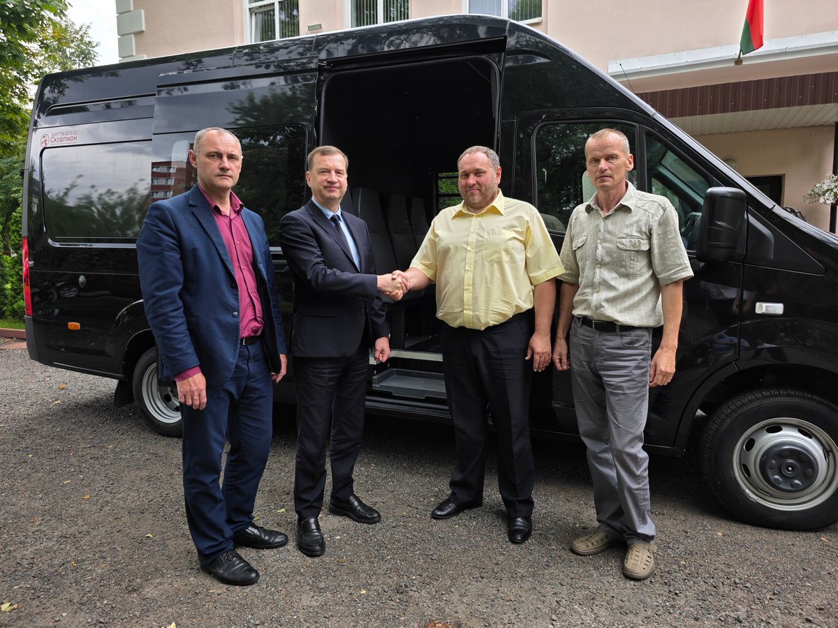 Максим Мищенко ознакомил Сергея Костюкова с оснащением автомобиля и подчеркнул, что его использование позволит повысить качество обслуживания жителей Гомеля, а также улучшить уровень комфорта для клиентов.