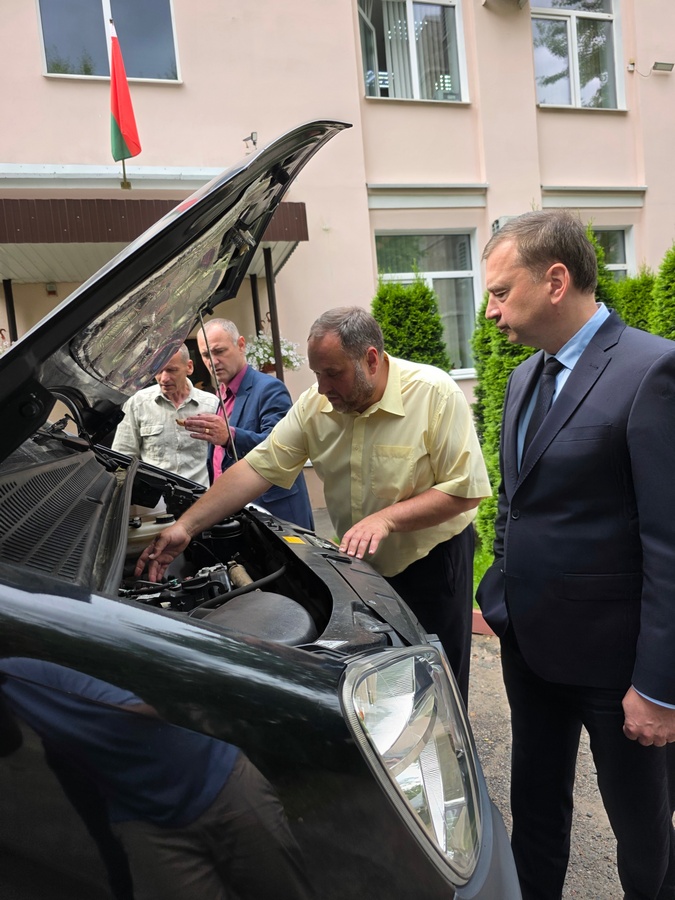 Максим Мищенко ознакомил Сергея Костюкова с оснащением автомобиля и подчеркнул, что его использование позволит повысить качество обслуживания жителей Гомеля, а также улучшить уровень комфорта для клиентов.
